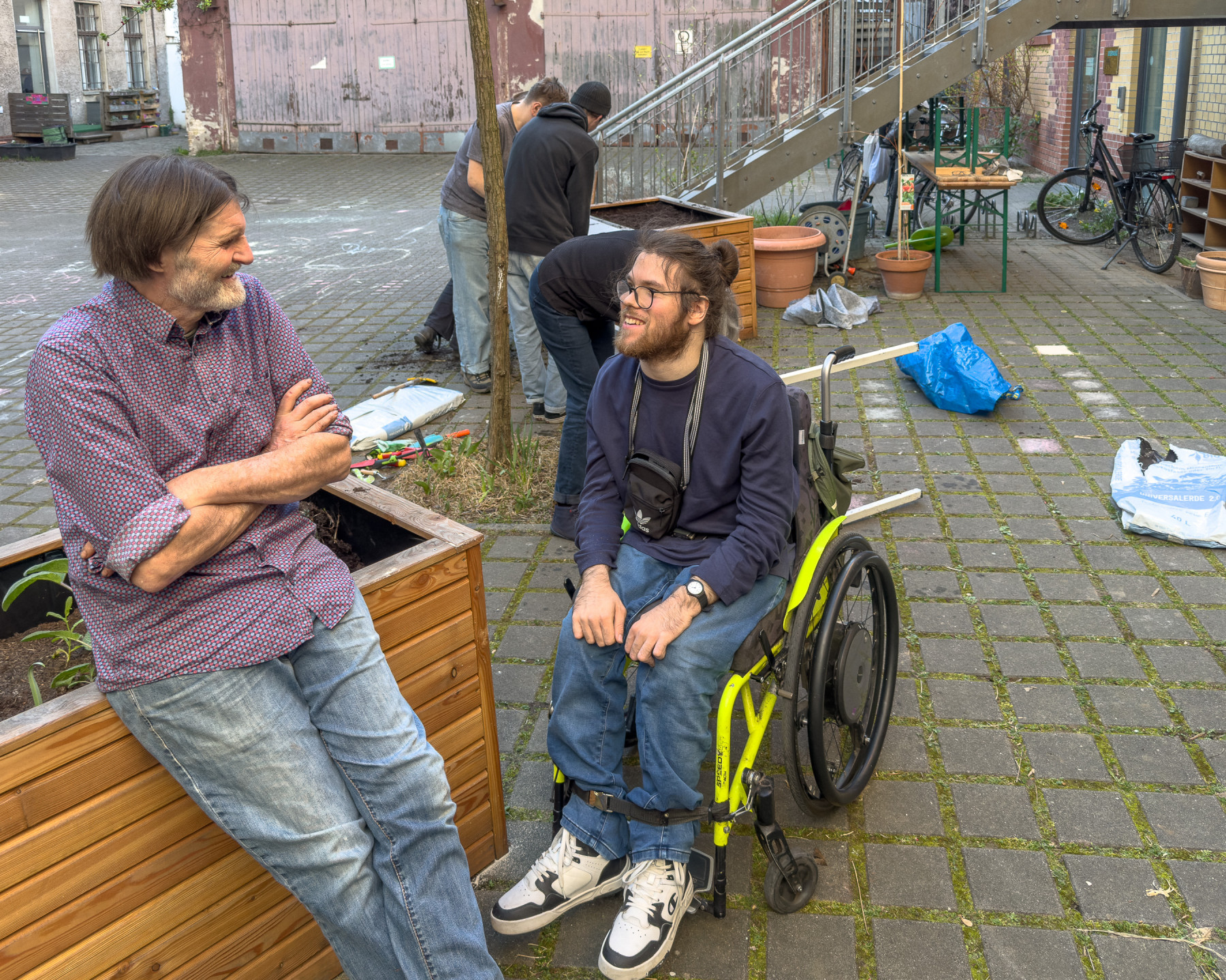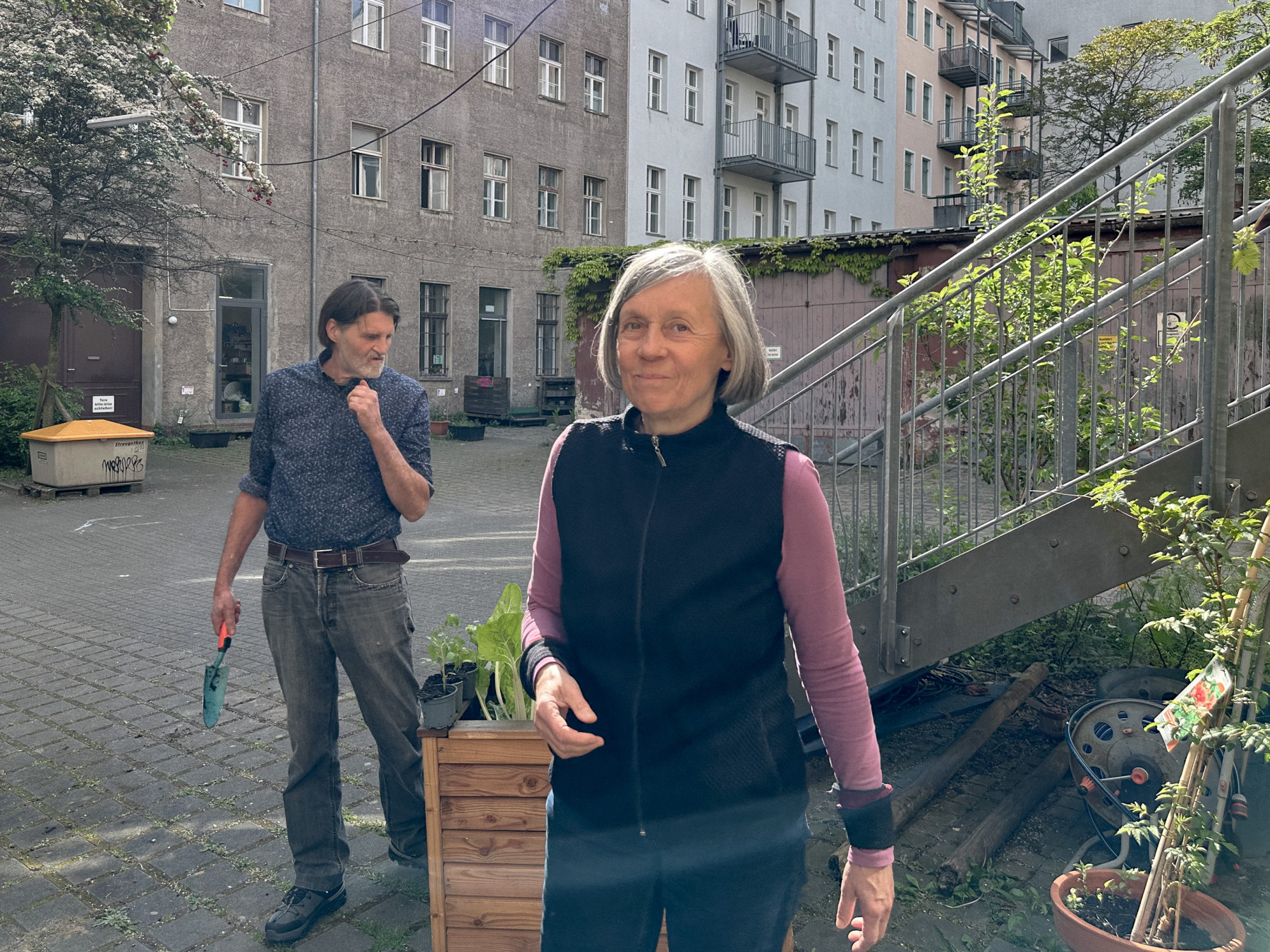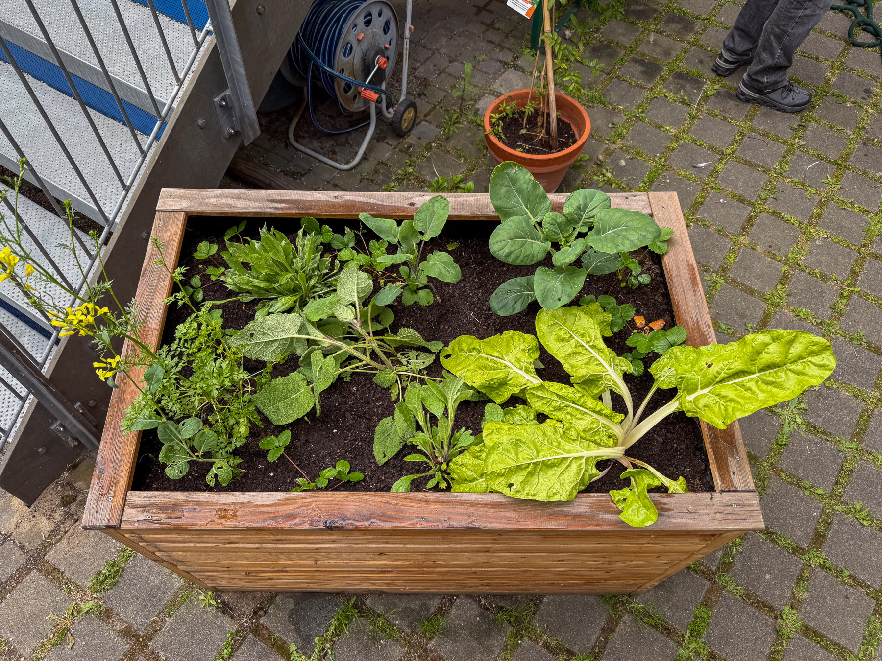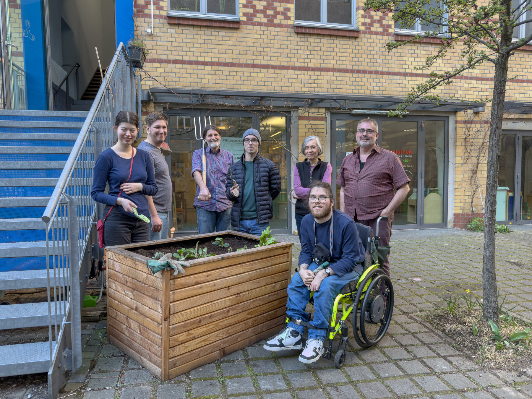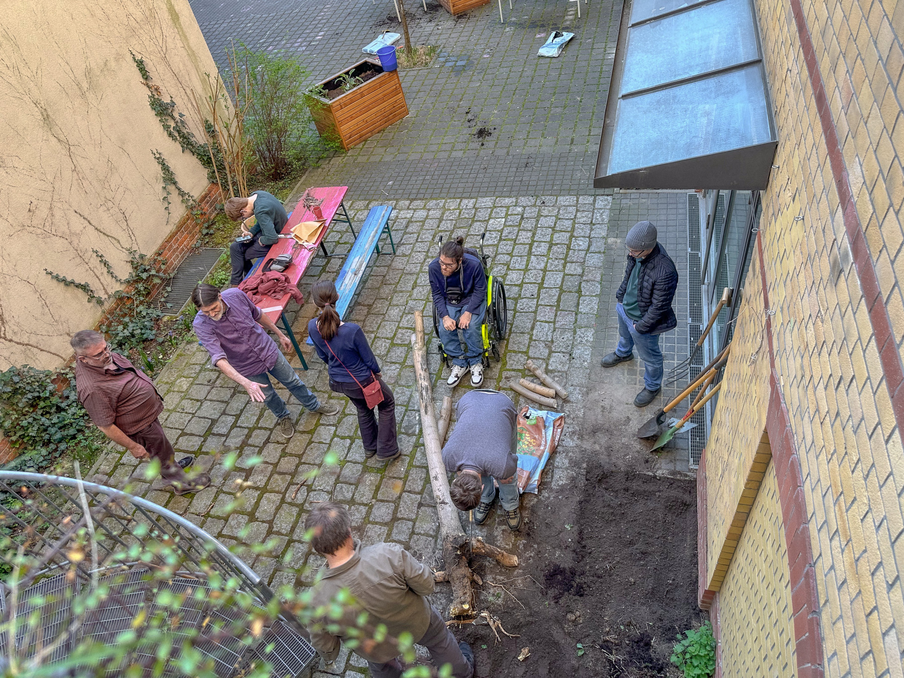 Wir bereiten die Hochbeete vor. Mehrjährige Pflanzen vorsichtig ausgraben, die Hochbeete mit neuer Erde auffüllen und die Planzen wieder einsetzen.