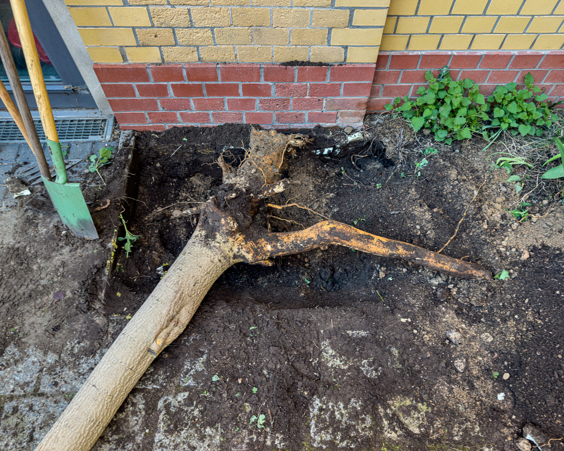 Wir reißen Bäume aus ... leider notwendig! Auch wenn dieses Exemplar, wie viele seiner Artgenossen, sehr schön aussah, musste es weg.