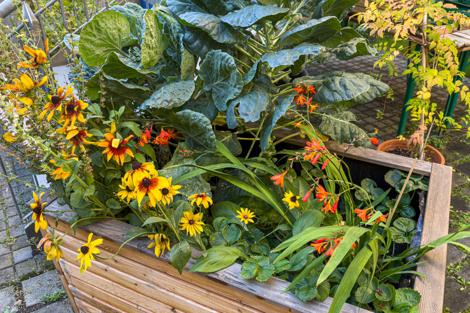 Unsere Hochbeete gedeihen, es grünt und blüht.