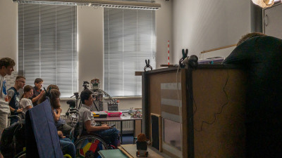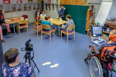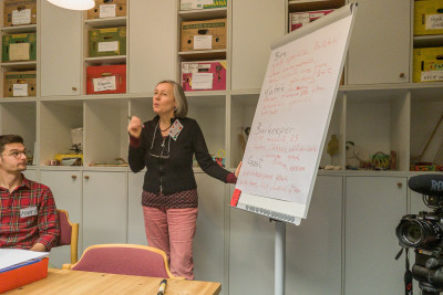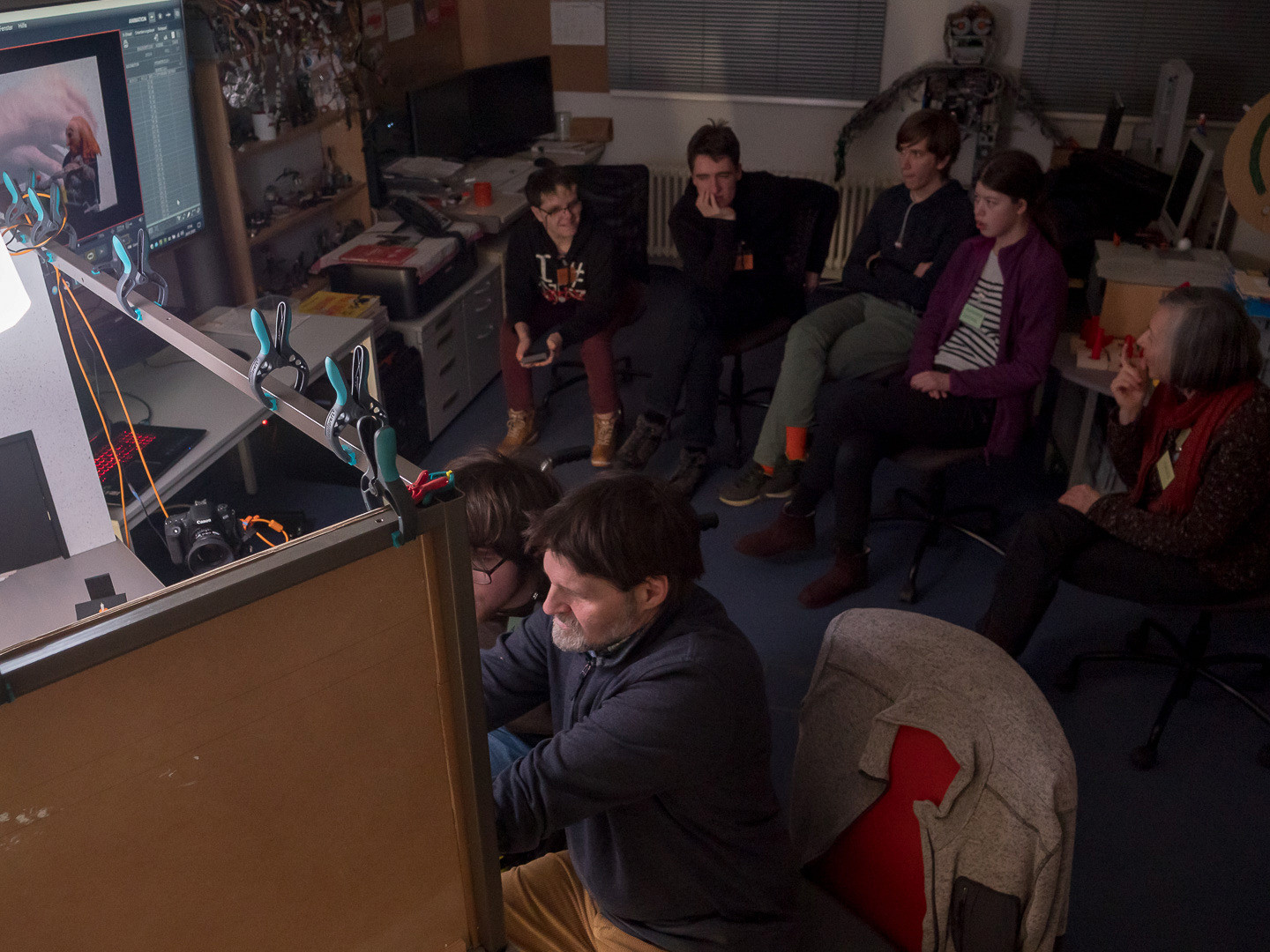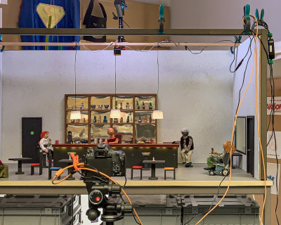 Die folgende Fotogalerie zeigt einige Schritte des Prozesses: Zuerst sammeln und besprechen wir unsere Film-Ideen. Fotos 3+4 zeigen eine Rollenspielsituation, in der wir Interaktionen in einer Bar ausprobieren und Dialoge der Figuren entwickeln. Nachdem unsere Figuren, Requistiten und die Kulisse entstanden war, gingen die "Dreharbeiten" los...
